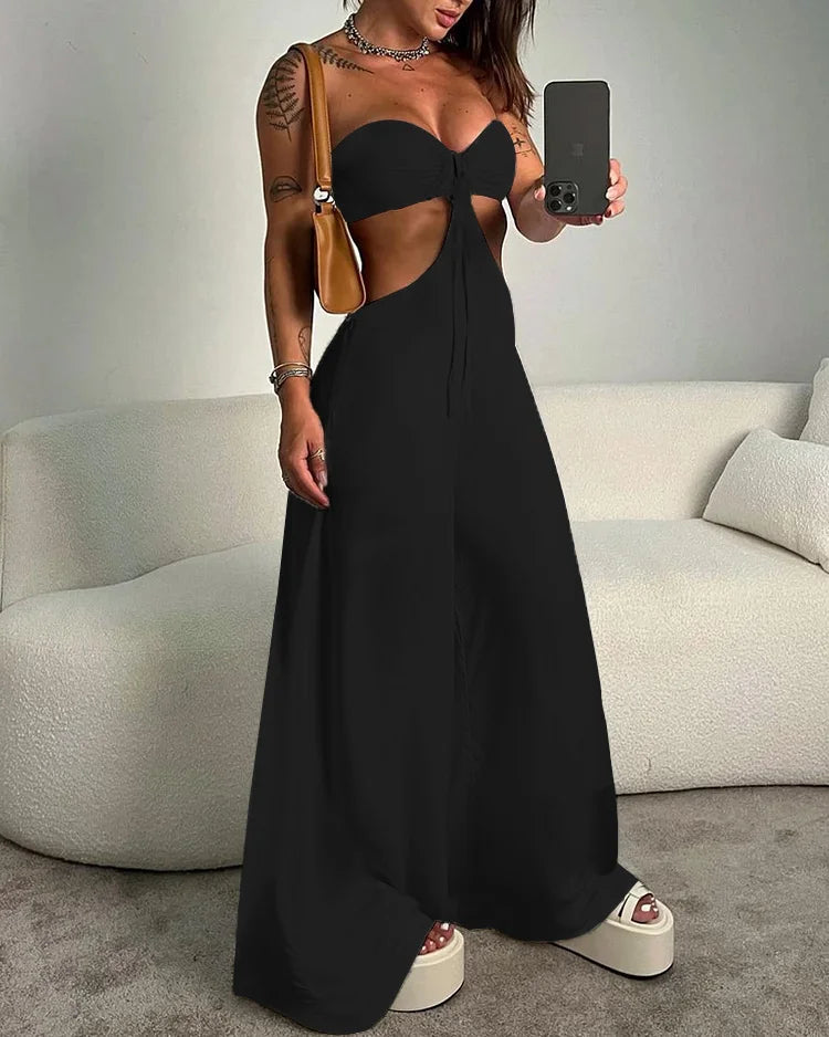 Sleeveless Tube Hollow Solid Color Jumpsuit