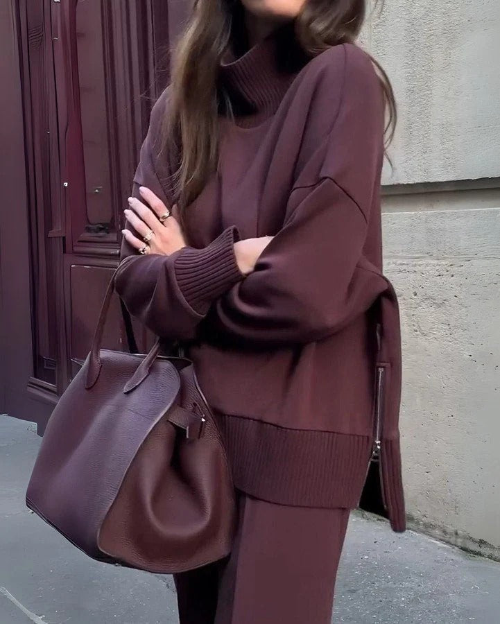 Este set no es solo ropa cómoda. Es una propuesta estética que combina silueta relajada, diseño contemporáneo y tejido suave al tacto. Con cuello alto, cremallera lateral y pantalón de corte amplio, convierte cualquier día en una oportunidad para vestir con elegancia sin esfuerzo.