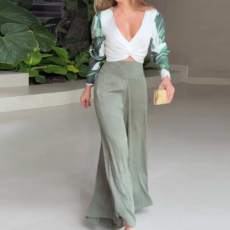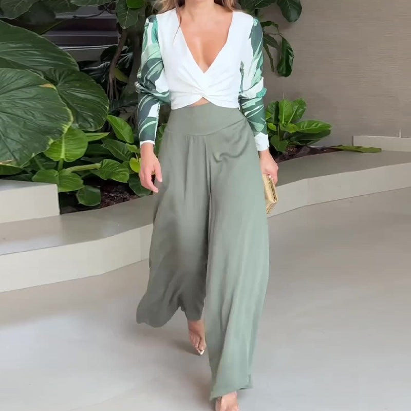 La parte superior presenta un diseño moderno y sofisticado, mientras que los pantalones a juego ofrecen un ajuste cómodo y favorecedor. Combínalo con tacones para un look de noche o con zapatillas para un estilo más casual.