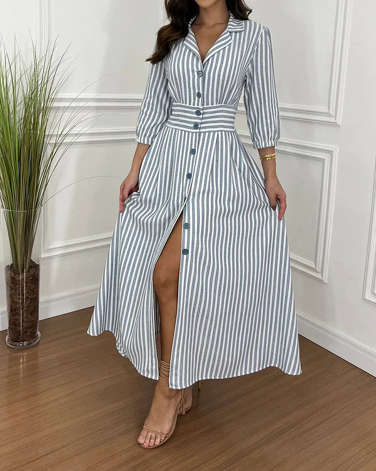 Vestido camisero con estampado de rayas y solapa