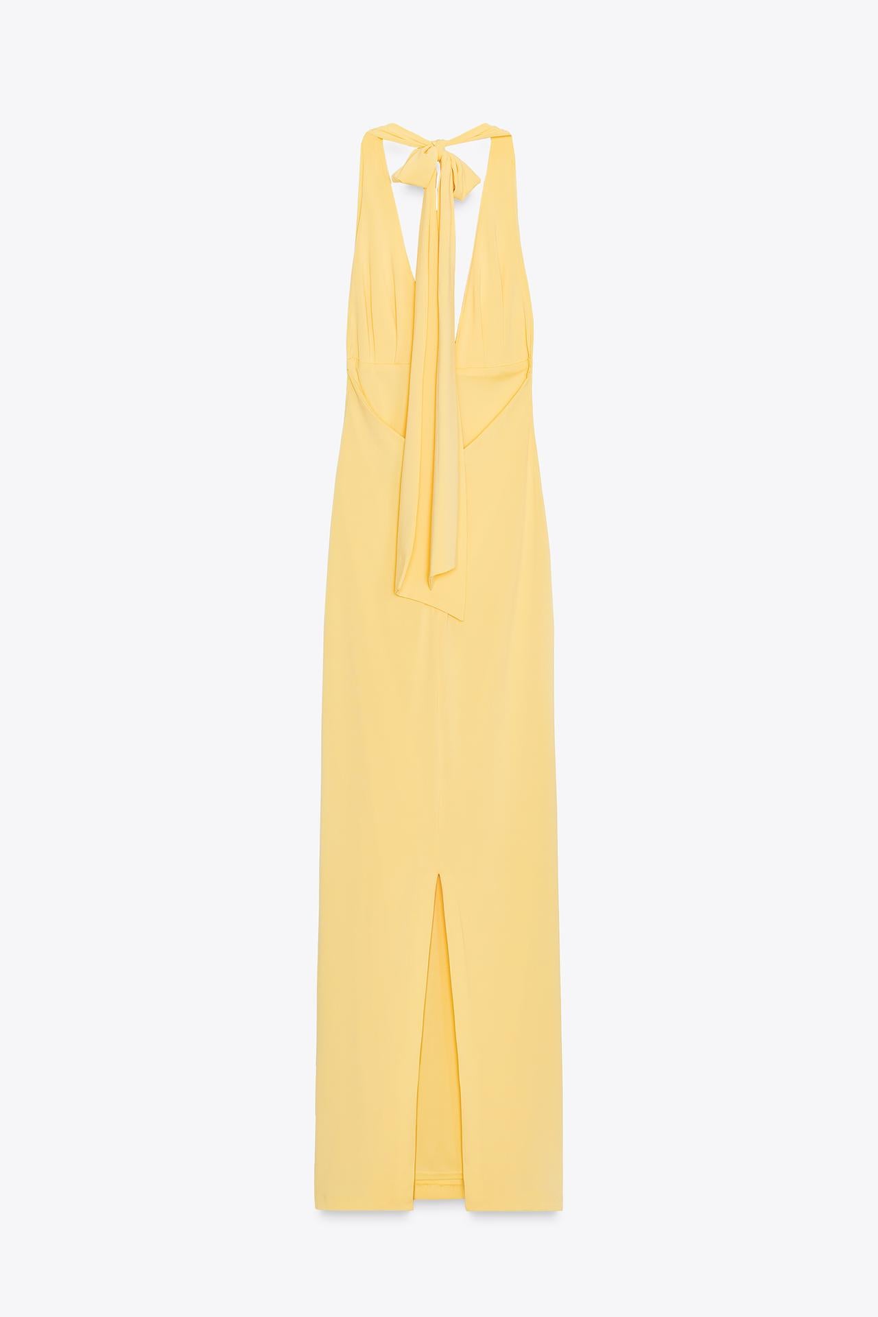 Cuello halter con lazada al cuello, que aporta elegancia y estructura