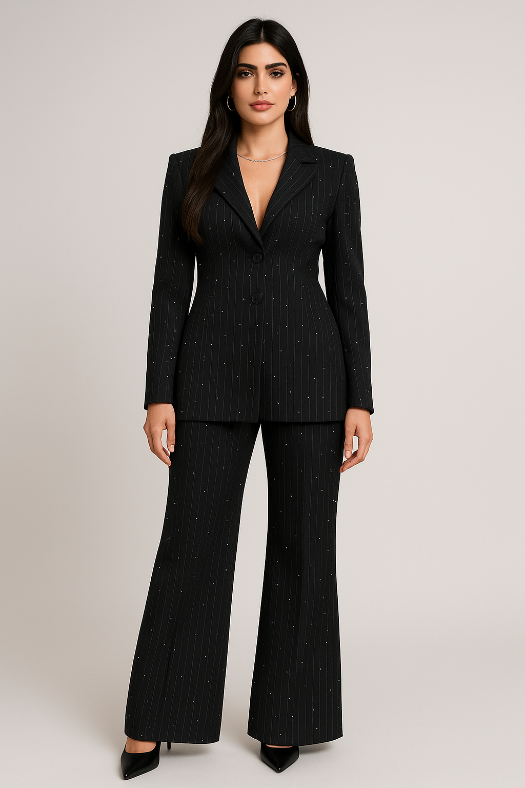 Conjunto Blazer & Pantalón con Detalles Brillantes