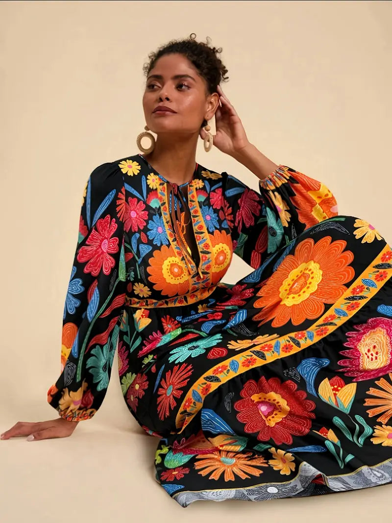 Diseñado para realzar la silueta, su corte en línea “A” se ajusta suavemente al cuerpo y cae con gracia hasta los tobillos, ofreciendo un movimiento fluido y elegante en cada paso.