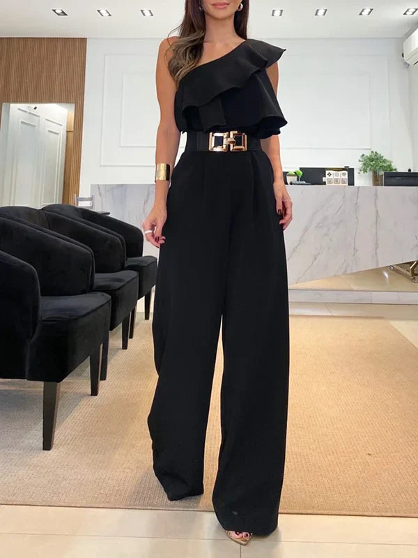 Monos asimétricos de falbala, lisos, sin mangas, con pernera ancha y un solo hombro¿Por qué el Mono Nelly™ es tu mejor opción para esta temporada?