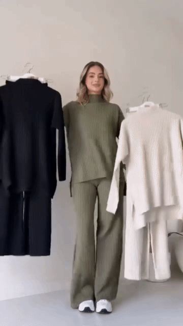 Diseñado para quienes buscan una combinación de elegancia moderna y comodidad cotidiana, este conjunto acanalado es ideal para cualquier ocasión, desde reuniones informales hasta salidas más formales.