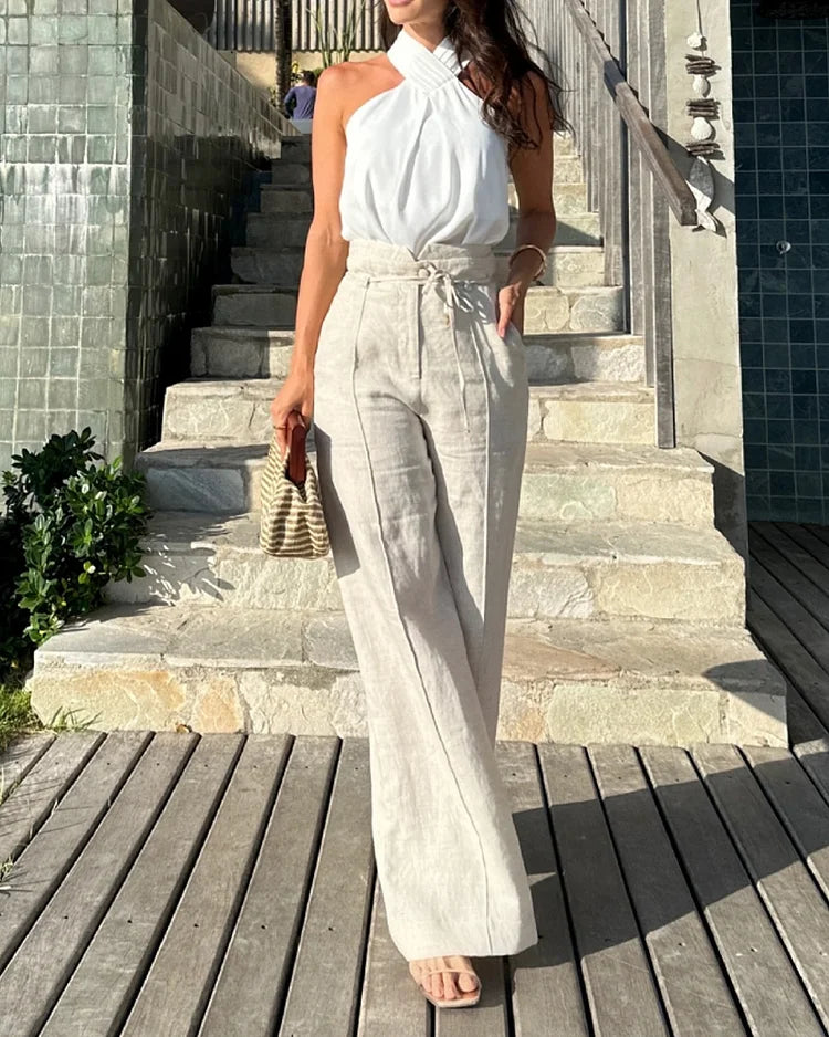 Descubre la perfecta combinación de elegancia y comodidad con el Conjunto Alteal™. Este conjunto de pantalones presenta un diseño único con cuello colgante y espalda descubierta que añade un toque de sensualidad y estilo a tu guardarropa. El traje de Top Halter Diagonal con hombros descubiertos te permite lucir sexy y sofisticada al mismo tiempo.