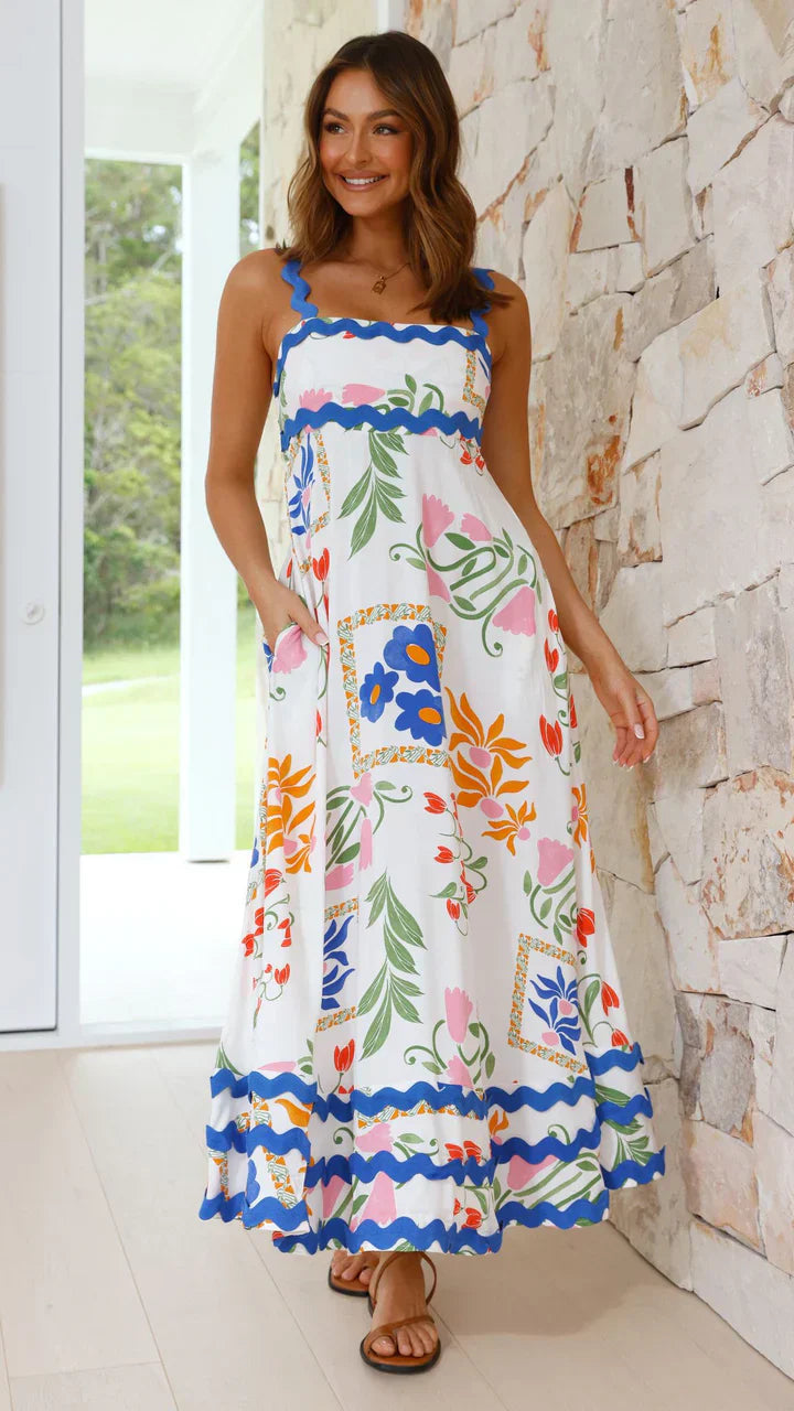 El Vestido Amaya™ presenta un estampado floral pintoresco que evoca la frescura y la alegría de la temporada estival, añadiendo un toque de color y vitalidad a tu guardarropa.