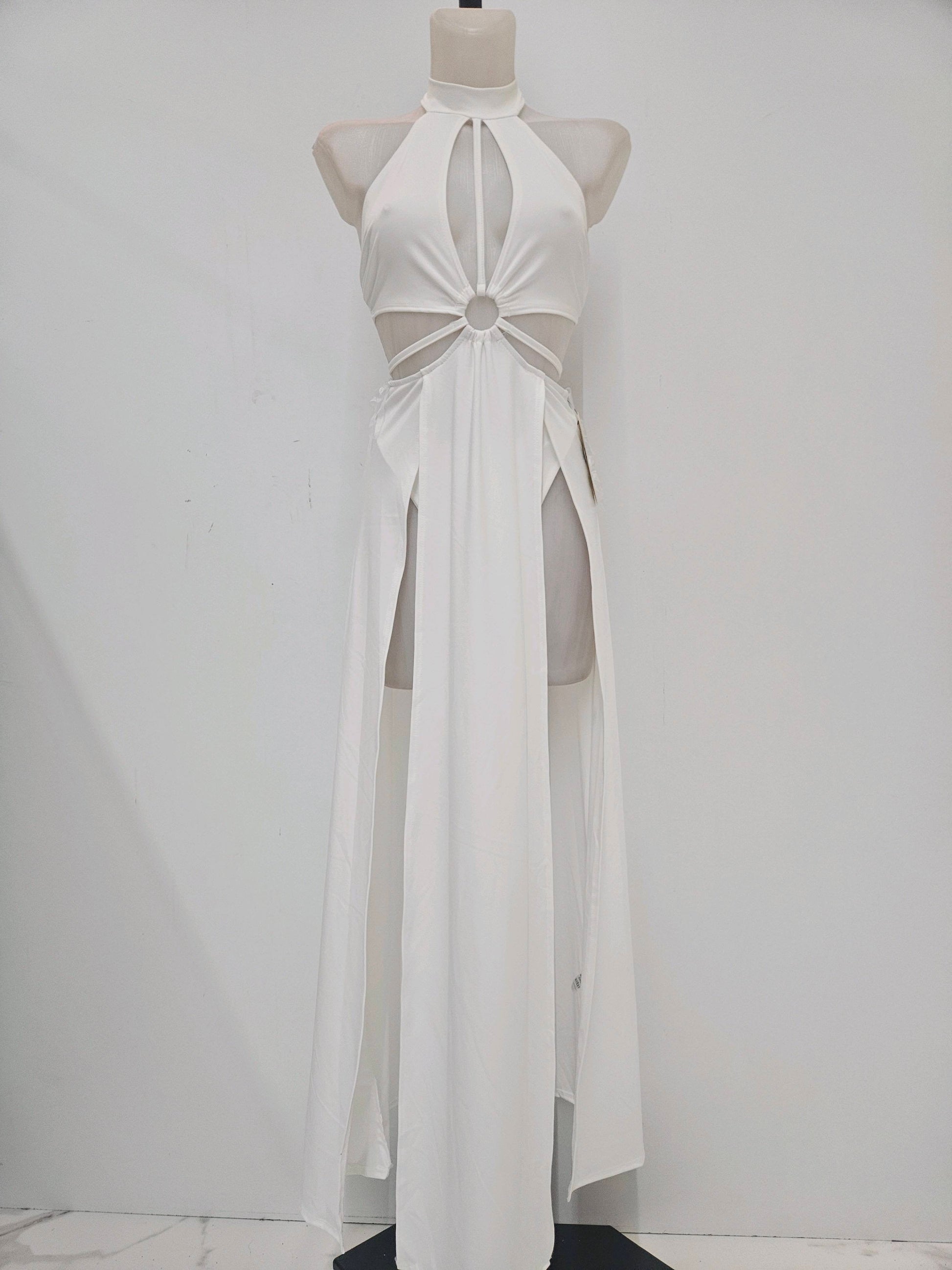 Con un escote halter con aberturas frontales y laterales estratégicas, el Luna abraza tu figura destacando curvas con un equilibrio perfecto entre audacia y sofisticación. El corte en la cintura con anilla central aporta un aire moderno y atrevido, mientras la falda de aberturas ultra altas crea una silueta fluida, poderosa y dramática que roba miradas con cada paso.